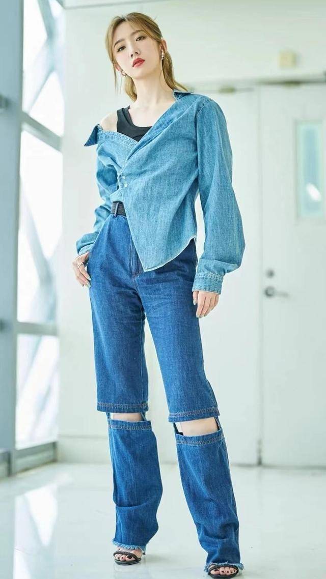 在时尚的海洋中,孟美岐以她独特的品味诠释着简约与经典的魅力。身着纯白衬衫,衬衫的线条简洁明快,优雅的领口微微敞开,略带随性的同时更显精致。下身搭配一条黑色牛仔裙,裙子的剪裁恰到好处,既展现了她的活力四溢,又凸显了她的曼妙身姿。这身搭配将孟美岐的身材优势展现得淋漓尽致,无论是曲线的美感还是长腿的视觉冲击,都让人难以忽视。