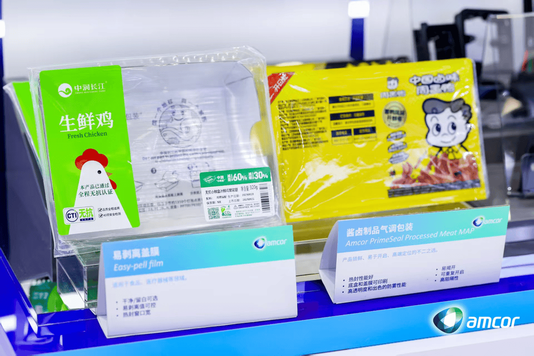 其联合创新的成果在展会期间集中亮相。安姆科携手包装行业伙伴裕同环保、莫迪维克,共同为生鲜企业中润长江研发的“鲜肉纸基气调包装”完成首发。中润长江总经理孙泽省在现场介绍,该包装将传统塑料托盘替换为纸质,可实现约60%的减塑和约30%的减碳,且其纸塑易分离的设计获得了“包装之星可持续奖”。此外,针对消费者痛点,安姆科与王老吉联合发布了保济丸“极致易撕包装”,通过“短线间距切割”技术,将传统瓶装改为轻便的条包,解决了携带不便和包装难撕的问题。
